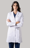 بطول 33.5 إنش، يوفر هذا اللاب كوت تغطية مثالية ومظهراً مهنياً. مثالي للأطباء والممرضين والصيادلة وجميع العاملين في المجال الطبي الذين يبحثون عن الراحة والأناقة في معطف طبي واحد.